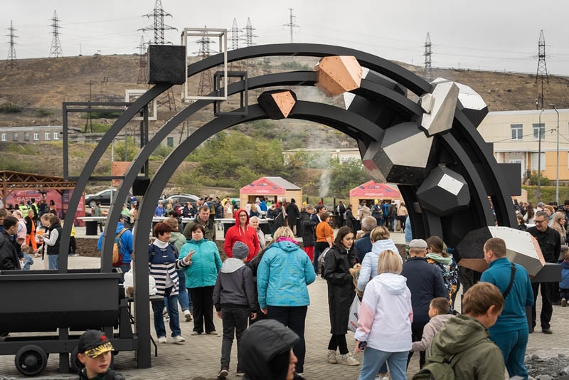 Особое внимание привлекают авторские арт-объекты: «Трон из перфораторов», вдохновлённый «Игрой престолов», и стела горняков — динамичная скульптура из бурового оборудования. Оба объекта сочетают промышленную эстетику и художественную выразительность.